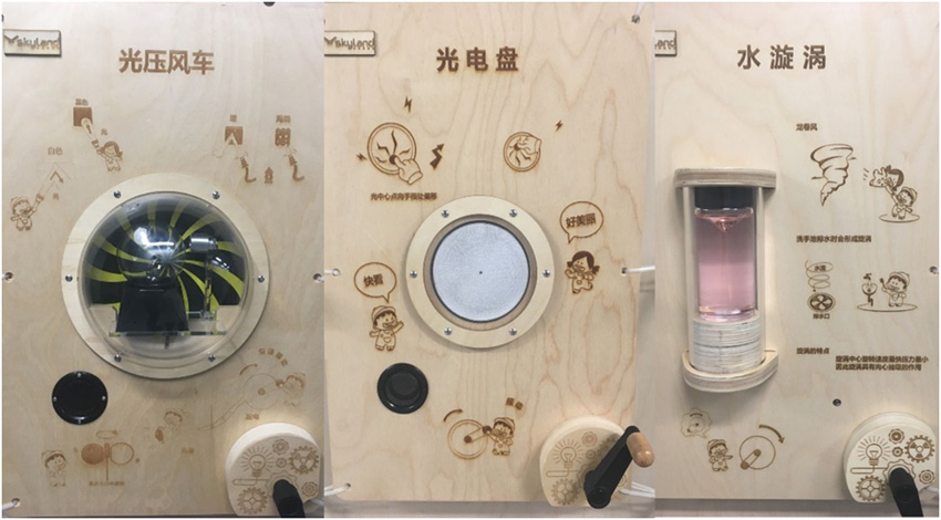 微科普墻將傳統的、簡陋的科學器件與木工、激光切割融合而出的作品,用更加友好和直觀的形式來體驗科學,吸引體驗者來體驗和實踐,同時也能給每一位大小體驗者在腦海中留下深刻的印象,起到科普的效果。